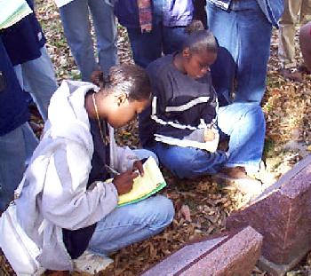 Students at Lyda and Helena's Gravesite in Huron Cemetery
